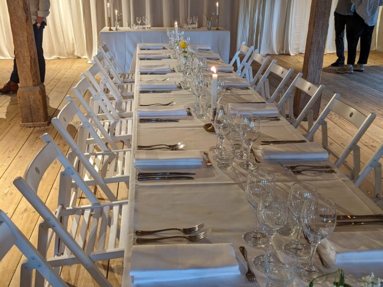 Minglet kommer vid fint väder hållas på innergården, och middagen på andra våning i gamla ladugårdshuset. Efter middagen blir det dans och fest hela natten lång (alltså till 02:00)!